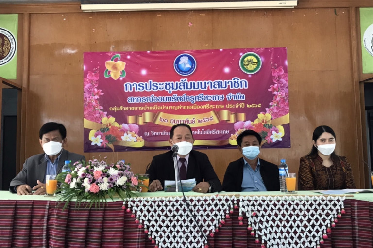วันที่ 23 ก.พ. 2565 ผู้สื่อข่าวรายงานว่า ที่หอประชุมวิทยาลัยเกษตรและเทคโนโลยีศรีสะเกษ อ.เมือง จ.ศรีสะเกษ นายณัฐพงศ์ ผาคำ นายกสมาคมฌาปนกิจสงเคราะห์สมาชิกสหกรณ์ออมทรัพย์ครูศรีสะเกษ จำกัด (ฌส.ศก.)และประธานชมรมกลุ่มข้าราชการบำเหน็จบำนาญอำเภอเมืองศรีสะเกษ และผู้แทนสมาชิกทุกคนได้ร่วมกันจัดการประชุมสัมมนาสมาชิกกลุ่มข้าราชการบำเหน็จบำนาญอำเภอเมืองศรีสะเกษ โดยได้เชิญ นายธีรนันท์ คำคาวี ประธานกรรมการสหกรณ์ออมทรัพย์ครูศรีสะเกษ จำกัด พร้อมด้วย นายลิขิต จันทร์มนตรี เลขานุการคณะกรรมการ และคณะมาพบปะและแจ้งเรื่องเกี่ยวกับความเคลื่อนไหวในการบริหารงานของคณะกรรมการสหกรณ์ มีการจัดสวัสดิการต่าง ๆ ให้ข้าราชการบำนาญ ได้รับทราบ โดยมีสมาชิกกลุ่มข้าราชการบำเหน็จบำนาญมาเข้าร่วมประชุมจำนวนมาก