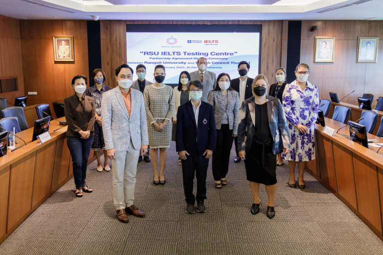 ผศ.ดร.ปถมาพร สุกปลั่ง รองอธิการบดีฝ่ายวิชาการ มหาวิทยาลัยรังสิต พร้อมด้วย Mrs. Helga Stellmacher - Director, British Council Thailand ร่วมลงนามบันทึกข้อตกลง (MOA) เพื่อให้มหาวิทยาลัยรังสิตเป็นศูนย์การทดสอบภาษาอังกฤษ IELTS ในประเทศไทยอย่างเป็นทางการ และเพื่อเตรียมความพร้อมสำหรับการศึกษาต่อต่างประเทศ หรือหลักสูตรนานาชาติ การประกอบอาชีพ ตลอดจนการพัฒนาทักษะความสามารถด้านภาษาอังกฤษเพื่อการใช้งานและการดำรงชีวิต ณ ห้องประชุม 1-801 อาคารอาทิตย์ อุไรรัตน์ (อาคาร 1) มหาวิทยาลัยรังสิต