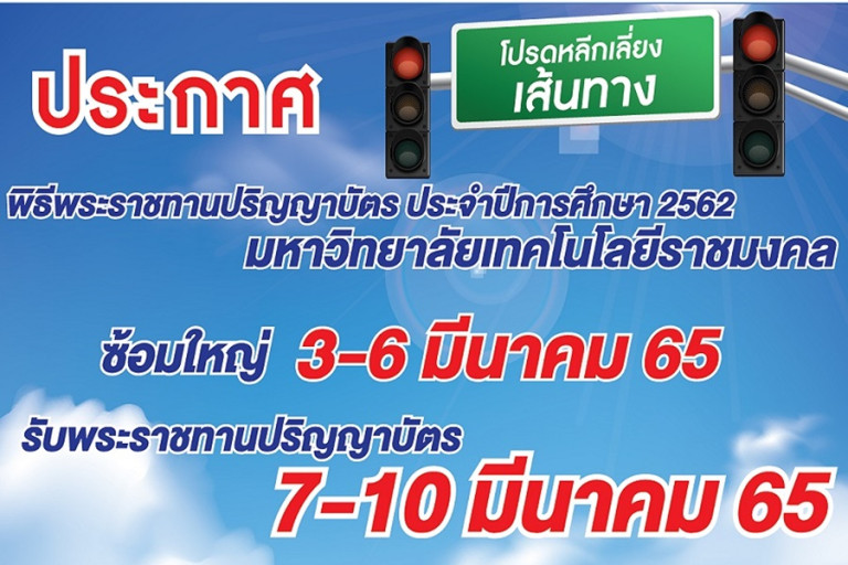 มหาวิทยาลัยเทคโนโลยีราชมงคลธัญบุรี (มทร.ธัญบุรี) แจ้งเตือนประชาชนผู้ใช้รถใช้ถนน โปรดหลีกเลี่ยงเส้นทาง ถ.รังสิต – นครนายก กม.13 (คลองหก) จ.ปทุมธานี เนื่องด้วยวันที่ 3 - 6 มีนาคม 2565 เป็นวันฝึกซ้อมใหญ่พิธีพระราชทานปริญญาบัตร มหาวิทยาลัยเทคโนโลยีราชมงคล ครั้งที่ 34 ประจำปีการศึกษา 2562 และในวันที่ 7 -10 มีนาคม 2565 วันพิธีพระราชทานปริญญาบัตร ณ หอประชุมราชมงคล มหาวิทยาลัยเทคโนโลยีราชมงคลธัญบุรี ตำบลคลองหก อำเภอคลองหลวง จังหวัดปทุมธานี จึงขอความกรุณาผู้ใช้เส้นทาง โปรดหลีกเลี่ยงเส้นทาง หากมีข้อสงสัยสอบถามรายละเอียดเพิ่มเติมได้ที่ โทร. 081-205-2989 หรือแผนที่การเดินทางได้ที่ www.graduation.rmutt.ac.th