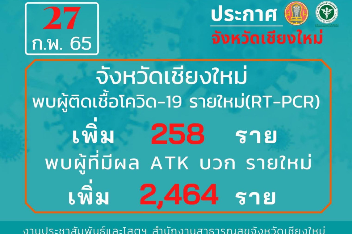 สำหรับสถานการณ์การแพร่ระบาดของโรคโควิด-19 จังหวัดเชียงใหม่วันนี้ พบผู้ติดเชื้อยืนยัน 258 ราย และพบผู้ติดเชื้อเข้าข่าย 2,464 ราย และมีผู้เสียชีวิต 1 ราย ขอให้ประชาชนเคร่งครัดในมาตรการป้องกันตนเอง พร้อมทั้งเข้ารับการฉีดวัคซีนป้องกันโรคโควิด-19 ตามนโยบายของรัฐบาล เพื่อเป็นการสร้างภูมิคุ้มกันหมู่ร่วมกันและลดความรุนแรงของโรคที่จะตามมา