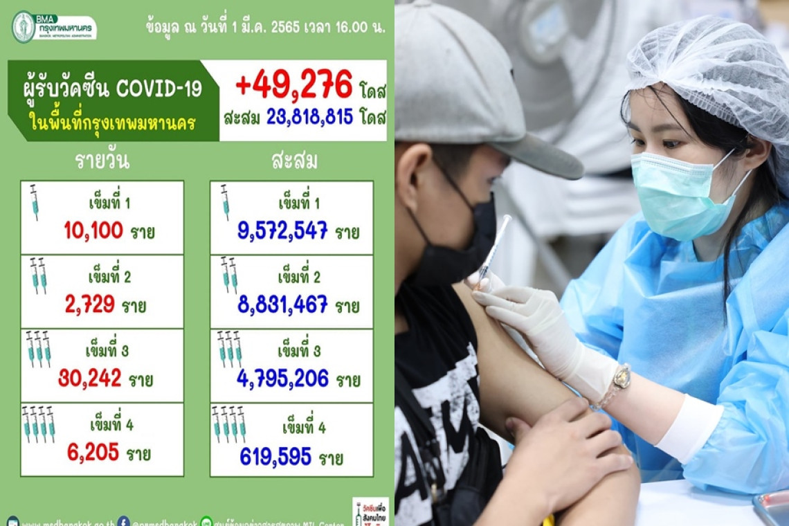 กรุงเทพมหานคร รายงานผลการให้บริการวัคซีน COVID-19 ในพื้นที่กรุงเทพมหานคร ข้อมูล ณ วันที่ 1 มี.ค. 65 เวลา 16.00 น.