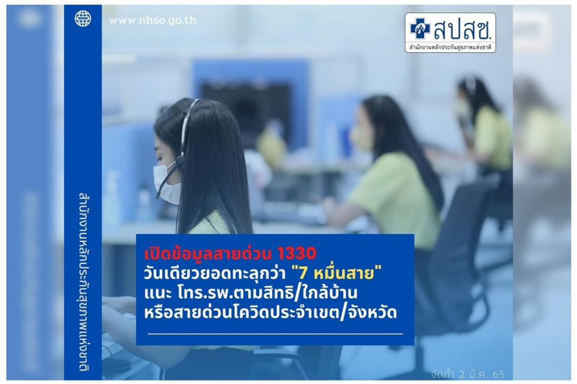 จากข้อมูลสายด่วน สปสช.1330 ในช่วงสัปดาห์ที่ผ่านมา ตั้งแต่วันที่ 21 กุมภาพันธ์ จนถึง 1 มีนาคม 2565 จำนวนการโทรเข้าสายด่วน สปสช.1330 แต่ละวันยังคงอยู่ที่ระดับ 40,000-70,000 สาย เช่นเดียวกับช่องทาง Non Voice หรือสื่อสารผ่านไลน์ สปสช. และ Facebook สปสช. ก็เฉลี่ยวันละกว่า 9,000 รายเช่นกัน ด้วยผู้ติดเชื้อรายใหม่ที่เพิ่มขึ้นกว่าสองหมื่นรายต่อวัน โดยวันที่ 1 มีนาคม มีจำนวนสายโทรเข้ามากที่สุดสูงถึง 70,300 สาย และช่องทาง Non Voice กว่า 12,000 ราย ยอมรับว่าเป็นจำนวนเกินศักยภาพที่ระบบจะรองรับได้