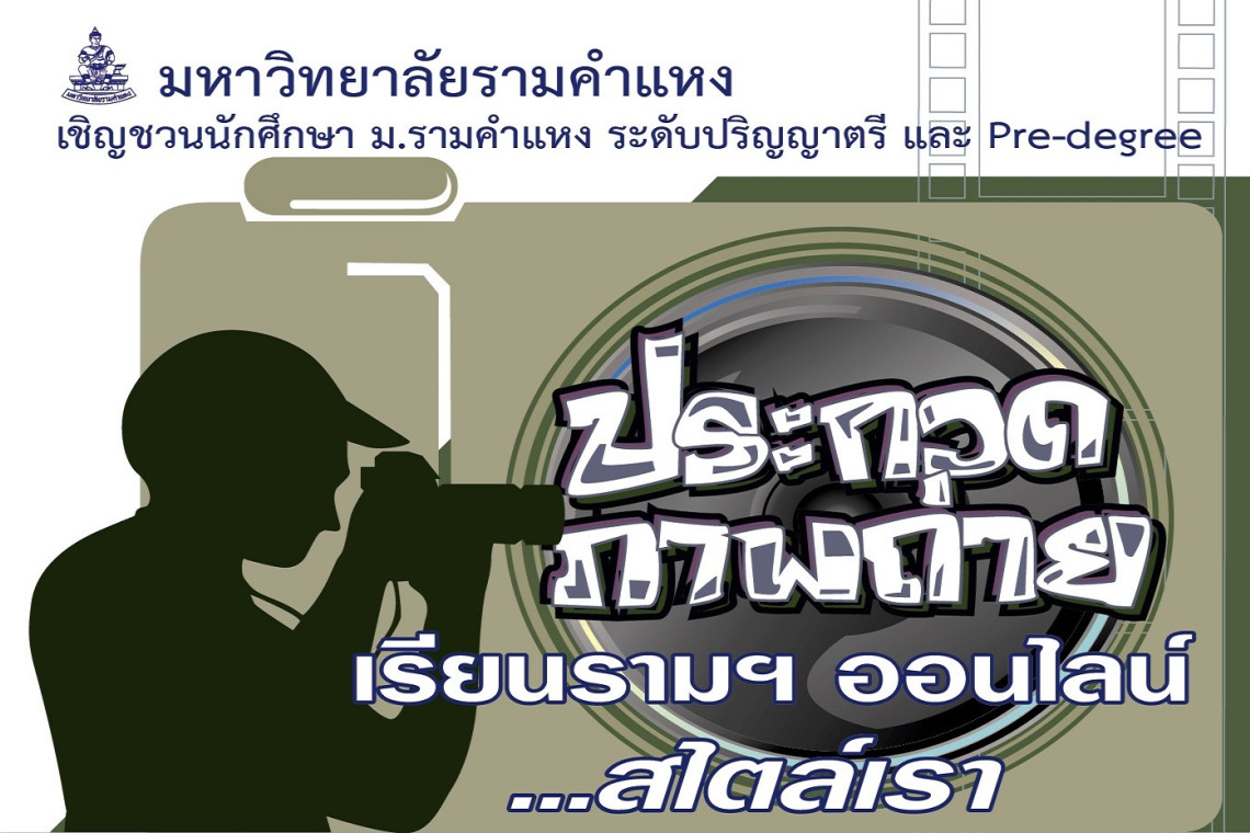 มหาวิทยาลัยรามคำแหง เชิญชวนนักศึกษาปริญญาตรีและนักศึกษาระบบ Pre-degree ส่งผลงานภาพถ่ายเชิงสร้างสรรค์ เข้าร่วมประกวดโครงการประกวดภาพถ่าย หัวข้อ “เรียนรามฯออนไลน์ สไตล์เรา” ชิงเงินรางวัลมูลค่ารวม 31,000 บาท พร้อมเกียรติบัตร เปิดรับผลงานตั้งแต่บัดนี้- 30 เมษายน 2565