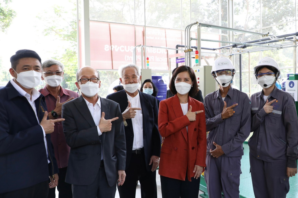 จากนั้น นางสาวตรีนุช ได้เป็นประธานเปิดศูนย์บริหารเครือข่ายการผลิต และพัฒนากำลังคนอาชีวศึกษา (Center of Vocational Manpower Networking Management : CVM) และศูนย์ความเป็นเลิศทางการอาชีวศึกษา (Excellent Center) สาขาปิโตรเคมี ณ วิทยาลัยเทคนิคมาบตาพุด และเป็นสักขีพยานในการรับมอบเงินสนับสนุนโครงการพัฒนาช่างเทคนิควิศวกรรมเคมี (V-ChEPC) และโครงการพัฒนาช่างเทคนิคสาขางานไฟฟ้าควบคุม (V-EsEPC) ประจำปีการศึกษา 2565 พร้อมมอบโล่เกียรติคุณแก่สถานประกอบการที่มอบเงินสนับสนุนโครงการฯ