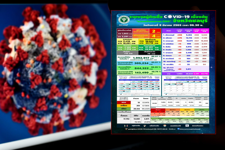 วันที่ 8 มี.ค.65 เพจเฟซบุ๊ก สำนักงานสาธารณสุขจังหวัดชลบุรี สสจ.ชลบุรี โพสต์ข้อความรายงานสถานการณ์โควิด ระบุว่า...