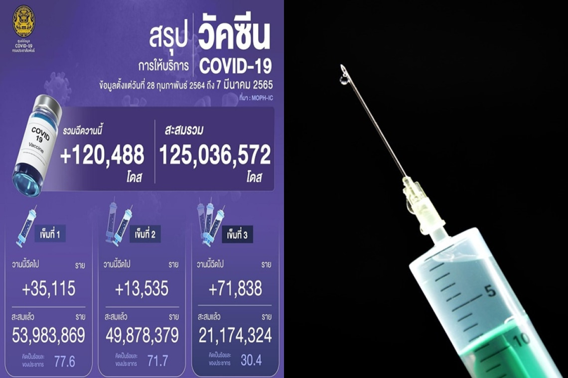 ภาพรวมยอดฉีดวัคซีน วันที่ 7 มี.ค.65