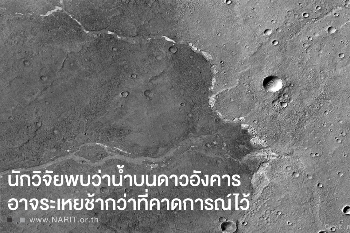 เพจ NARIT สถาบันวิจัยดาราศาสตร์แห่งชาติ โพสต์ผ่านเฟซบุ๊กระบุ "นักวิจัยพบว่า #น้ำบนดาวอังคาร อาจระเหยช้ากว่าที่คาดการณ์ไว้