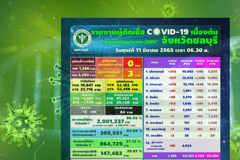 วันที่ 11 มี.ค.65 เพจ สำนักงานสาธารณสุขจังหวัดชลบุรี สสจ.ชลบุรี โพสต์ข้อความระบุว่า ...