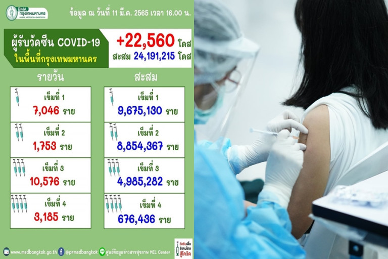 ยอดผู้รับวัคซีนเพิ่ม 22,560 โดส