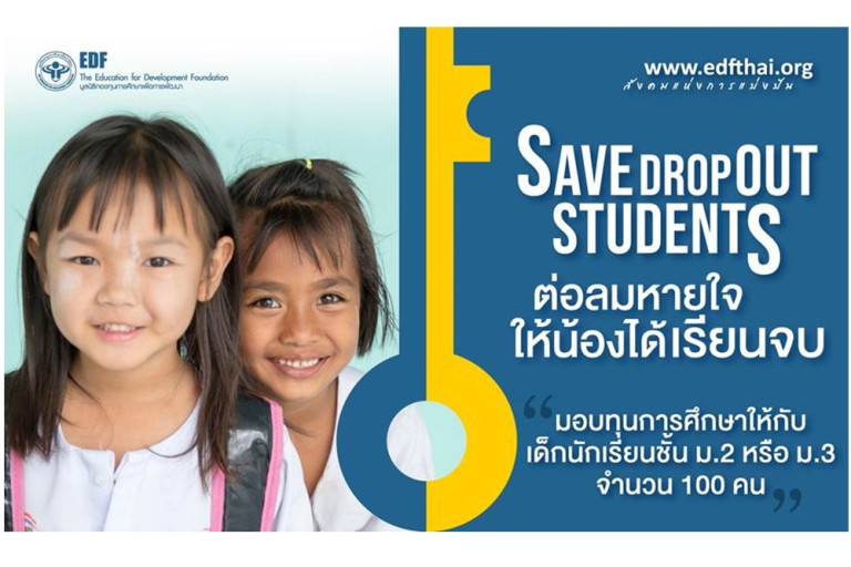 มูลนิธิ EDF จับมือ เทใจดอทคอม ทำโครงการ “Save Dropout Students ต่อลมหายใจให้น้องได้เรียนจบ” มอบทุนการศึกษาให้นักเรียนยากจนชั้น ม.2 หรือ ม.3 ในโรงเรียนขนาดเล็กในภาคตะวันออกเฉียงเหนือจำนวน 100 คน ทุนละ 2,000 บาท ซึ่งทั้งหมดเป็นนักเรียนที่เคยสมัครขอรับทุนในปีการศึกษา 2564 แต่พลาดโอกาสเนื่องจากเงินบริจาคที่มูลนิธิได้รับไม่เพียงพอ โดยโครงการฯมุ่งหวังให้นักเรียนทุนได้ประคับประคองชีวิตการเรียนในปีการศึกษา 2565 ที่กำลังจะถึง ทั้งนี้องค์กรหรือผู้สนใจสามารถร่วมบริจาคทุนการศึกษาให้นักเรียนยากจนติดต่อได้ทางเว็บไซต์ https://taejai.com/th/d/save-drop-out-students/ ภายใน 30 มิ.ย.65