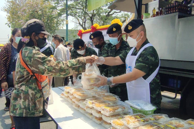 โดย พล.ร.9 ได้นำผลผลิตทางการเกษตร จากโครงการทหารพันธ์ุดี พล.ร.9 เเละผลผลิตทางการเกษตรของหน่วย มาประกอบอาหารปรุงสุก จำหน่ายให้กับประชาชนในราคาประหยัด ตั้งแต่วันที่ 23 ม.ค.65 จนถึงวันที่ 15 มี.ค.65 รวมทั้งสิ้น 52 วัน จำนวน 2 พื้นที่ บริเวณหน้าศาลาขุนแผน