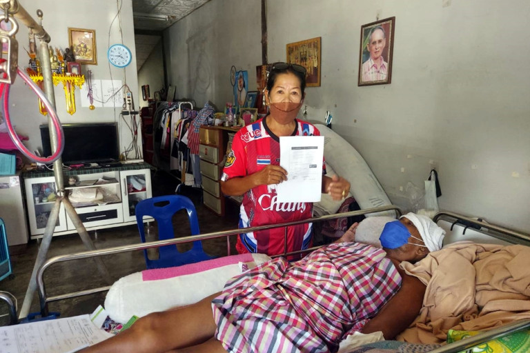 ได้ขายรถพ่วงข้างซึ่งเป็นยานพาหนะขายไอติมไปแล้วและกู้ยืมเงินจากผู้อื่นมาเพื่อรักษาสามี และต้องหยุดขายไอติมไม่มีรายได้เลย จึงทุกข์ใจมากเพราะหลานชายก็ยังเล็ก สามีต้องมาป่วยติดเตียงเช่นนี้ จึงขอขอบพระคุณผ่านสื่อมวลชนมา ณ โอกาสนี้