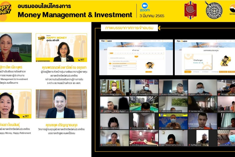 ตลาดหลักทรัพย์แห่งประเทศไทย ร่วมกับสมาคมแม่บ้านตำรวจ จัดอบรมครั้งที่ 2 ในโครงการ "Money Management & Investment" เพื่อส่งเสริมความรู้ด้านการเงิน การจัดการหนี้ และการออมให้แก่ข้าราชการตำรวจ คู่สมรส หรือบุคคลในครอบครัวของข้าราชการตำรวจจากทุกสังกัดทั่วประเทศ จำนวน 261 คน โดยมี ณฐิกา ปิตะนีละบุตร ประธานชมรมแม่บ้านโรงเรียนนายร้อยตำรวจ กรรมการบริหารสมาคม และผู้ประสานงานโครงการ Money Management & Investment พร้อมด้วย พรรณวดี ลดาวัลย์ ณ อยุธยา ผู้ช่วยผู้จัดการ ตลาดหลักทรัพย์ฯ เปิดงานเมื่อ 3 มี.ค. ที่ผ่านมา ผู้เข้าอบรมทุกคนได้ร่วมกันทำ SET FIN Quizz พิชิต Fin Gap แบบทดสอบความรู้ด้านการเงินและได้รับผลทดสอบสำหรับแต่ละบุคคล รวมทั้งคำแนะนำในการเสริมประเด็นความรู้ด้านการเงินส่วนบุคคลด้วย