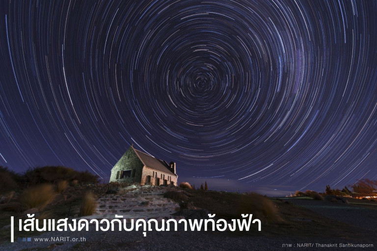 เพจ NARIT สถาบันวิจัยดาราศาสตร์แห่งชาติ โพสต์ผ่านเฟซบุ๊กระบุ #เส้นแสงดาว (Star trails) เป็นภาพถ่ายที่สามารถใช้บ่งชี้ถึงค่าทัศนวิสัยหรือคุณภาพท้องฟ้าของสถานที่นั้นๆ ได้ ภาพเส้นแสงดาวที่มีแสงดาวสว่างต่อเนื่องไม่ขาด แสดงให้เห็นถึงสภาพท้องฟ้าของตลอดทั้งคืนว่ามีทัศนวิสัยดีเหมาะแก่การสังเกตการณ์ทางดาราศาสตร์