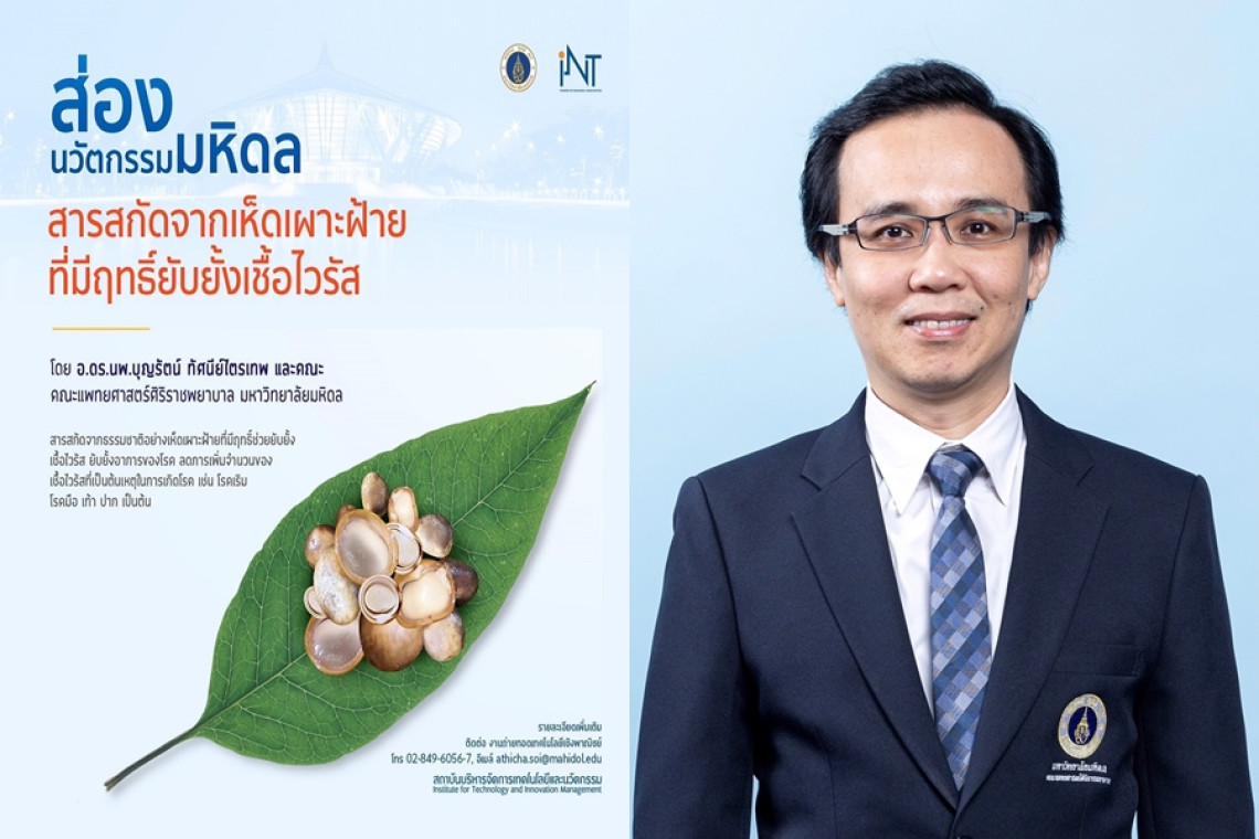 อาจารย์ ดร. นายแพทย์บุญรัตน์ ทัศนีย์ไตรเทพ หัวหน้าศูนย์วิจัยเป็นเลิศด้านการถ่วงดุลทางอิมมูโนโลยี คณะแพทยศาสตร์ศิริราชพยาบาล มหาวิทยาลัยมหิดล ได้เปิดเผยถึงความสำเร็จจากการค้นพบสารสำคัญที่มีฤทธิ์ยับยั้งเชื้อไวรัสก่อโรคจาก "เห็ดเผาะฝ้าย" ว่าขณะนี้ได้ร่างเอกสารทางวิชาการ เพื่อตีพิมพ์ผลงานนวัตกรรมดังกล่าวเผยแพร่ในวารสารวิชาการระดับนานาชาติ และอยู่ระหว่างการยื่นจดทรัพย์สินทางปัญญาในประเทศไทย ดำเนินการโดย สถาบันบริหารจัดการเทคโนโลยีและนวัตกรรม (iNT) มหาวิทยาลัยมหิดล ซึ่งก่อนหน้านี้ได้รับการจดสิทธิบัตรแล้วในสาธารณรัฐประชาชนจีน เตรียมต่อยอดพัฒนาเป็นเภสัชภัณฑ์ป้องกันหรือลดความรุนแรงของโรคมือเท้าปากเป็นครั้งแรกของโลก และคาดว่าจะมีมูลค่าทางเศรษฐกิจได้ถึงปีละหลายพันล้านบาท