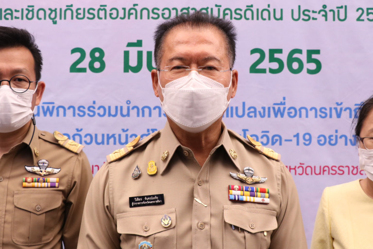 นายวิเชียร จันทรโณทัย ผวจ.นครราชสีมา ในฐานะประธานคณะกรรมการโรคติดต่อจังหวัดนครราชสีมา เปิดเผยว่า สถานการณ์ขณะนี้การติดเชื้อไม่เป็นกลุ่มเป็นก้อนอยู่ในลักษณะกระจายตัว โดยเฉพาะครอบครัวและเพื่อนร่วมงานที่รวมตัวกันแล้วมีกิจกรรมทางสังคมทั้งร่วมรับประทานอาหารหรือเลี้ยงสังสรรค์ ทุกภาคส่วนจึงเน้นย้ำแนวทางป้องกันและควบคุมต้องสวมหน้ากากและหมั่นล้างมือบ่อยๆ รวมทั้งรณรงค์ประชาสัมพันธ์การฉีดวัคซีนสามารถลดอาการเจ็บป่วยและอัตราการเสียชีวิต ซึ่งแต่ละวันมีจำนวนผู้ป่วยรายใหม่เฉลี่ย 2 พันคน แต่มีอาการสีเหลืองไม่เกินร้อยละ 5 โดยให้ลูกหลานนำผู้สูงอายุ กลุ่ม 608 มาฉีดวัคซีนก่อนวันที่ 31 มี.ค เพื่อให้มีภูมิคุ้มกันก่อนเทศกาลสงกรานต์