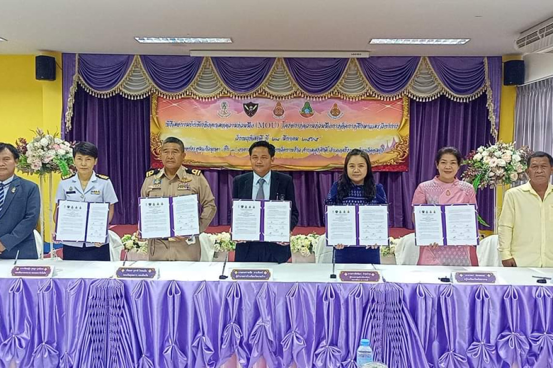 นายสงครามชัย ดาบจันทร์ ผอ.รร.วัดนาพร้าว พร้อมคณะครูและบุคลากรโรงเรียนร่วมจัดพิธีลงนามบันทึกความเข้าใจ (MOU) 5 ฝ่าย ระหว่าง ศูนย์การศึกษาพิเศษเขตการศึกษา 12 จังหวัดชลบุรี, กองเรือยุทธการ กองทัพเรือ, กองพันลาดตระเวน หน่วยบัญชาการนาวิกโยธิน กองทัพเรือ, โรงเรียนวัดตโปทารามและโรงเรียนวัดนาพร้าว เพื่อร่วมกันจัดการศึกษา และจัดกิจกรรมเพื่อส่งเสริมสมรรถภาพทางด้านร่างกาย รวมถึงทักษะทางอาชีพให้กับกลุ่มนักเรียนที่มีความต้องการพิเศษ จ.ชลบุรี