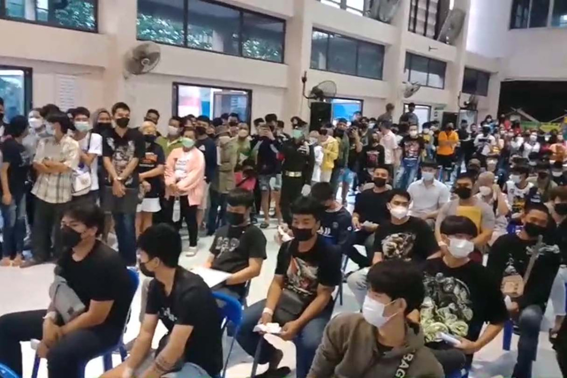 เมื่อวันที่ 4 เม.ย.65 ที่หอประชุมที่ว่าการอำเภอเมือง จังหวัดมุกดาหาร ซึ่งเป็นสถานที่ตรวจคัดเลือกทหารกองเกินเข้ารับราชการทหารกองประจำการ ประจำปี 2565 ในช่วงเช้า มีชายไทยเข้ารายงานตัวกันอย่างต่อเนื่อง ภายใต้มาตรการป้องกันการแพร่ระบาดของเชื้อไวรัสโควิด 19 อย่างเคร่งครัด ทั้งการตรวจวัดอุณหภูมิ และให้บริการแอลกอฮอล์ล้างมือ บรรยากาศตั้งแต่เช้าเป็นไปอย่างคึกคัก มีพ่อแม่พี่น้องเพื่อนฝูงและคนรักมาให้กำลังใจผู้ที่มารายงานตัว และรอให้กำลังใจในการจับใบดำใบแดงที่จะมีขึ้นในช่วงบ่ายจำนวนมาก ซึ่งชายไทยทุกคนจะต้องเข้ารายงานตัวและทำการตรวจร่างกายตามขั้นตอนเพื่อหาคนที่มีสภาพสมบูรณ์ตามเกณฑ์เข้าทำการจับใบดำใบแดง