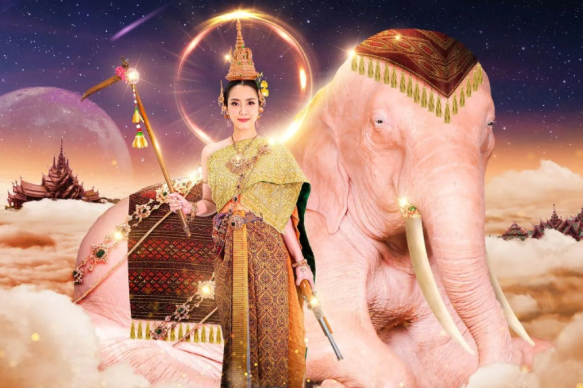 นางสงกรานต์ปีนี้ทรงนามว่า “กิริณีเทวี” ทรงพาหุรัดทัดดอกมณฑา อาภรณ์แก้วมรกต พระหัตถ์ขวาทรงขอ พระหัตถ์ซ้ายทรงปืน เสด็จยืนมาเหนือหลังกุญชร (ช้าง) เป็นพาหนะ..