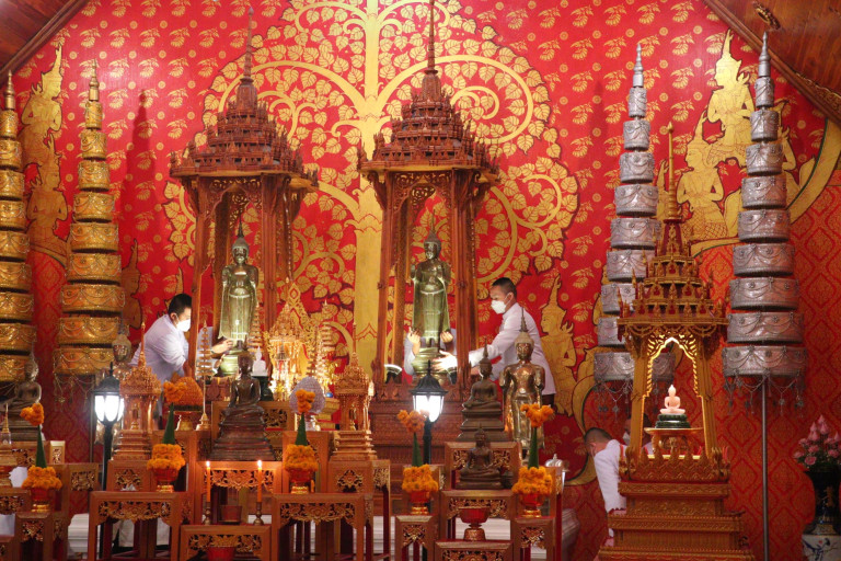 เมื่อวันนี้ 13 เมษายน 2565 ผู้สื่อข่าวรายงานว่า นางศิวพร ฉั่วสวัสดิ์ ผู้ว่าราชการจังหวัดหนองบัวลำภู นายวุฒิพงษ์ ศิริสถิตย์ นายกองค์การบริหารส่วนจังหวัดหนองบัวลภู นายอธิวัฒน์ นาวิศิษฏ์กร นายกเทศมนตรีเมืองหนองบัวลำภู พร้อมหัวหน้าส่วนราชการ พ่อค้าประชาชน ร่วมพิธีอัญเชิญพระพุทธรูปศักดิ์สิทธิ์ คู่บ้านคู่เมืองจากวัดมหาชัย มายังบริเวณสนามนเรศวรมหาราชหนองบัวลำภู เพื่อให้ประชาชนได้สรงน้ำเนื่องในเทศกาลสงกรานต์