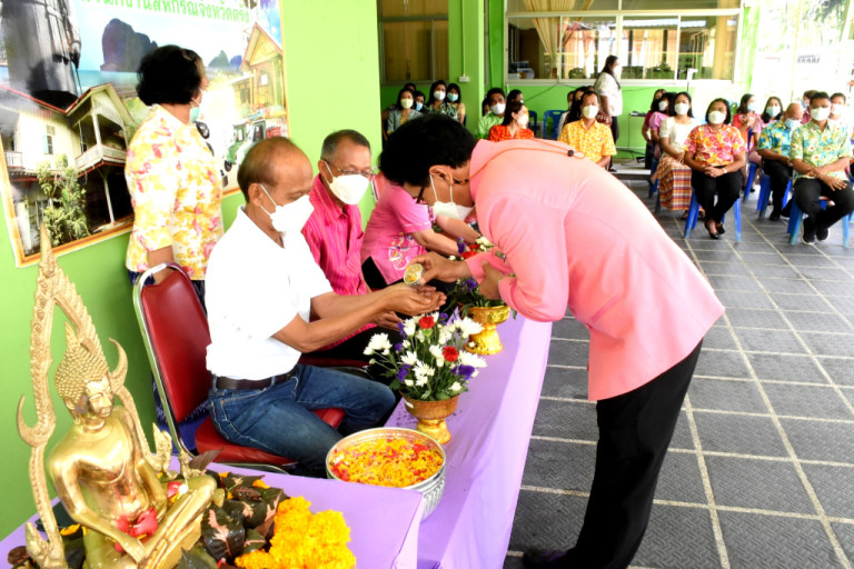 สำนักงานสหกรณ์จังหวัดตรัง จัดกิจกรรมรดน้ำขอพรอดีตข้าราชการผู้สูงอายุ เนื่องในเทศกาลสงกรานต์ ประจำปี 2565