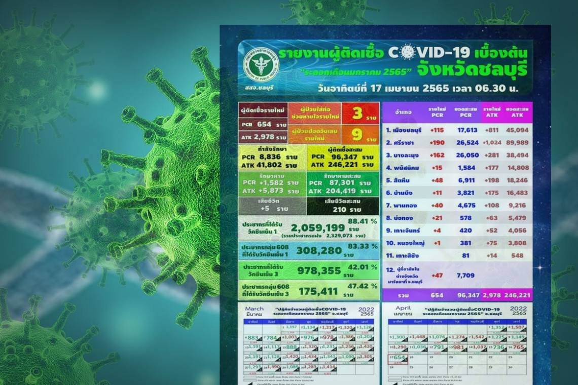 วันที่ 17 เมษายน 2565 รายงานผู้ติดเชื้อโควิด-19 รายใหม่ จำนวน 654 ราย (ผู้ติดเชื้อยืนยัน RT-PCR)