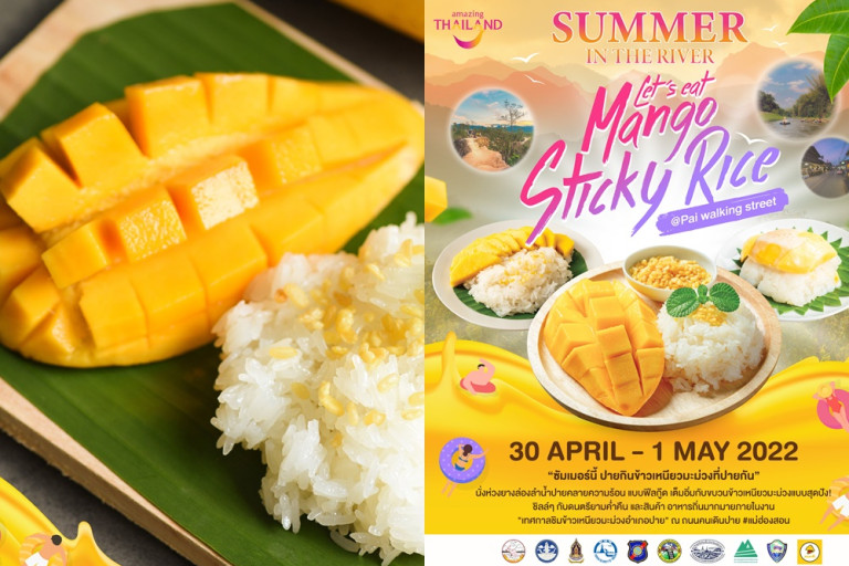 การท่องเที่ยวแห่งประเทศไทย (ททท.) สำนักงานแม่ฮ่องสอน ร่วมกับจังหวัดแม่ฮ่องสอน อำเภอปาย เทศบาลตำบลปาย สำนักงานการท่องเที่ยวและกีฬาจังหวัดแม่ฮ่องสอน สำนักงานวัฒนธรรมจังหวัดแม่ฮ่องสอน สถานีตำรวจท่องเที่ยวปาย สมาคมธุรกิจท่องเที่ยวแม่ฮ่องสอน สมาคมธุรกิจท่องเที่ยวปาย หอการค้าจังหวัดแม่ฮ่องสอน สายการบินนกแอร์ กำหนดจัดงาน “เทศกาลชิมข้าวเหนียวมะม่วง” Summer in the River : Let’s eat Mango Sticky Rice ณ บริเวณถนนคนเดินอำเภอปายจังหวัดแม่ฮ่องสอน ในวันเสาร์ที่ 30 เมษายน – อาทิตย์ที่ 1 พฤษภาคม 2565 เวลา 17.30 – 22.00 น.
