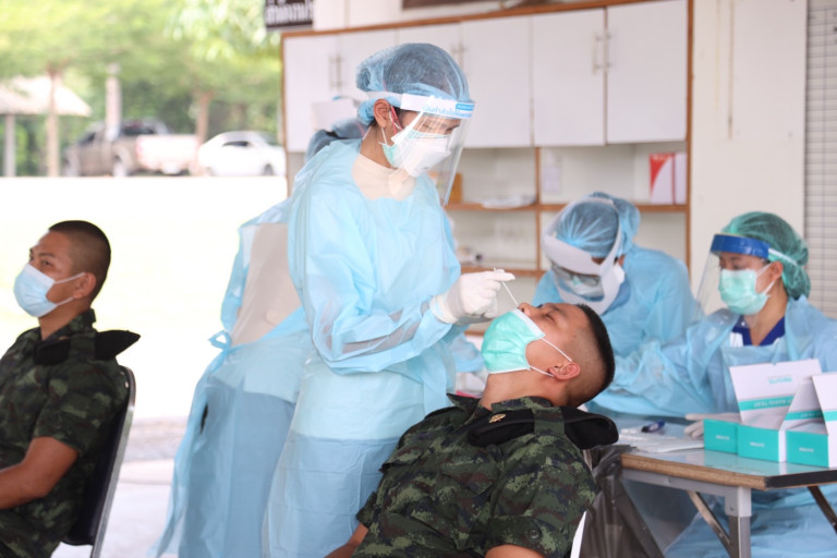 โรงพยาบาลค่ายสุริยพงษ์ จัดทีมแพทย์คัดกรองตรวจหาเชื้อไวรัส COVID-19 ให้กับน้องทหารกองประจำการหลังกลับจากการลาพัก ปฏิบัติตามมาตรการ COVID-Free Setting และ Universal Prevention”
