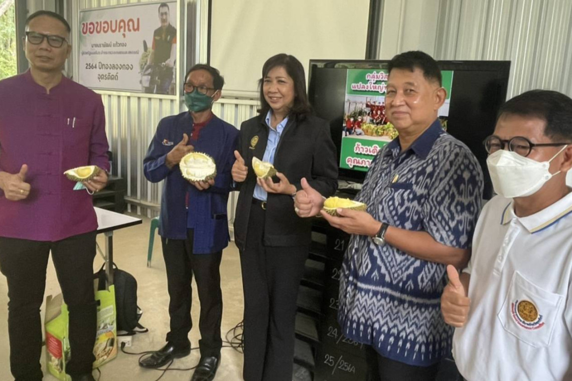เมื่อเวลา 09.00 น.วันที่ 29 เมษายน 2565 ผู้สื่อข่าวรายงานว่า นายปรัชญา เสริฐลือชา นายอำเภอลับแล พร้อมด้วย นายพัฒนศักดิ์ พ่วงสมบัติ เกษตรจังหวัดอุตรดิตถ์ และ เจ้าหน้าที่ที่เกี่ยวข้องฯ ต้อนรับ นางรุ่งรัตนา บุญ-หลง ผู้ตรวจราชการสำนักนายกรัฐมนตรี เขตตรวจราชการที่ 17 ประธานกรรมการธรรมาภิบาลจังหวัดอุตรดิตถ์ และคณะที่ได้มาปฏิบัติภารกิจลงพื้นที่ตรวจเยี่ยมกลุ่มแปลงใหญ่ทุเรียนเมืองลับแล ซึ่งได้รับการสนับสนุนงบประมาณตามแผนปฏิบัติราชการประจำปีงบประมาณ พ.ศ. 2565 ซึ่งเป็นการดำเนินโครงการส่งเสริมและพัฒนาสินค้าเกษตรปลอดภัย (GAP) โดยมีข้าราชการในพื้นที่ รวมถึงผู้บริหารองค์กรปกครองส่วนท้องถิ่น(อปท.) ตลอดจนกำนัน ผู้ใหญ่บ้าน ฯลฯ เกษตรกรชาวสวนทุเรียน และประชาชน ร่วมให้การต้อนรับอย่างอบอุ่น พร้อมทั้งรับฟังนโยบายในการขับเคลื่อนข้อราชการต่างๆ ในด้านการส่งเสริมและพัฒนาสินค้าเกษตรปลอดภัย ณ บริเวณพื้นที่ หมู่ที่ 10 ตำบลฝายหลวง อำเภอลับแล จังหวัดอุตรดิตถ์
