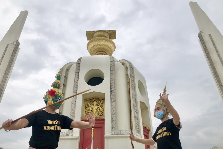 วันที่ 5 พ.ค.65 เวลา 10.49 น. ผู้สื่อข่าวรายงาน ว่า กลุ่มนาฏศิลป์เพื่อเสรีดนตรีเพื่อมวลชน ทำกิจกรรมร้องรำ ทำเพลง หยุดขังการช่วงชิงพื้นที่ทางวัฒนธรรมเสรีภาพแห่งอารมณ์การรับรู้และรสนิยมทางศิลปะ และมาร่วมกันแสดงเจตจำนงสานต่ออุดมการณ์เพื่อพี่น้องเราในเรือนจำ ที่ บริเวณอนุสาวรีย์ประชาธิปไตย ถ.ราชดำเนิน