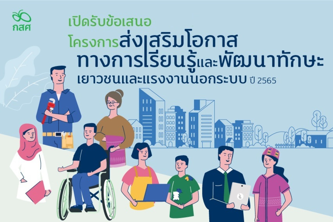 กองทุนเพื่อความเสมอภาคทางการศึกษา (กสศ.) เชิญชวนหน่วยงาน สถาบันการศึกษาทั้งรัฐและเอกชน องค์กรชุมชน มูลนิธิ องค์กรสาธารณประโยชน์ และกิจการเพื่อสังคม (หน่วยเสนอโครงการ) ที่มีแนวคิดมุ่งเน้นพัฒนารูปแบบการจัดการเรียนรู้สำหรับผู้ขาดแคลนทุนทรัพย์หรือผู้ด้อยโอกาส โดยเฉพาะเยาวชนนอกระบบการศึกษาและแรงงานนอกระบบ ยื่นข้อเสนอโครงการ “ส่งเสริมโอกาสทางการเรียนรู้และพัฒนาทักษะเยาวชนและแรงงานนอกระบบ ปี 2565” เพื่อรับการสนับสนุนทุนจาก กสศ. โดยผู้สนใจสามารถศึกษาประกาศสนับสนุนทุนได้ตั้งแต่วันนี้ – 31 พฤษภาคม 2565 และสมัครผ่านระบบออนไลน์ (www.eef.or.th) ได้ตั้งแต่วันที่ 17 – 31 พฤษภาคม 2565 ภายในเวลา 16.30 น. สอบถามข้อมูลเพิ่มเติมเกี่ยวกับโครงการฯ ติดต่อ โทรศัพท์ 02-079-5475 กด 3 หรืออีเมล community@eef.or.th