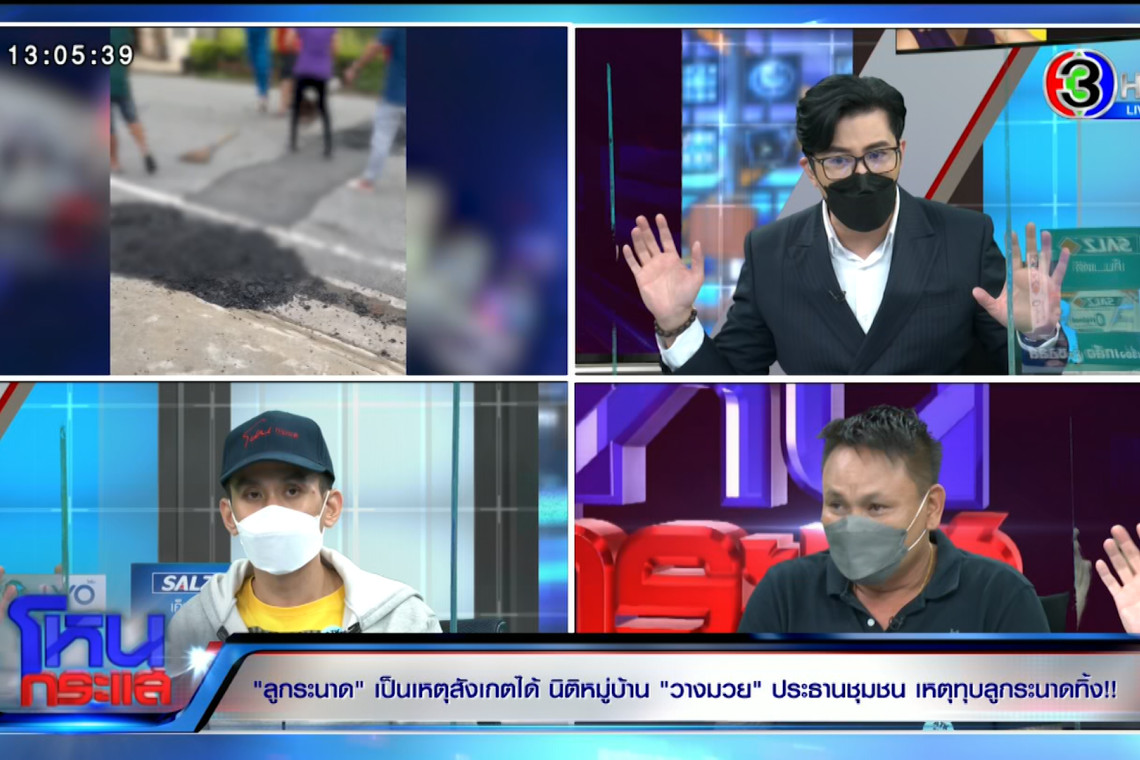 รายการโหนกระแสวันที่ 11 พ.ค. 65 ดำเนินรายการโดย “หนุ่ม กรรชัย กำเนิดพลอย” ผลิตในนามบริษัท ดีคืนดีวัน จำกัด ออกอากาศทุกวันจันทร์-ศุกร์ เวลา 12.35 น. ทางช่อง 3 กดเลข 33 สัมภาษณ์ โจ สุชัย ประธานชุมชนเทศบาลพัฒนา 2 แสนสุข จ.ชลบุรี , เล็ก จันทรา ชาวบ้าน, นุก อนุชา ชาวบ้าน อีกฝั่ง หมอกร ศุภณัฐ กรรมการนิติหมู่บ้าน คู่กรณี ,ตั้ม อัครวินท์ ฝั่งหมอกร , ทนายแก้ว ดร.มนต์ชัย จงไกรรัตนกุล รองประธานคณะกรรมการสิ่งแวดล้อม สภาทนายความ
