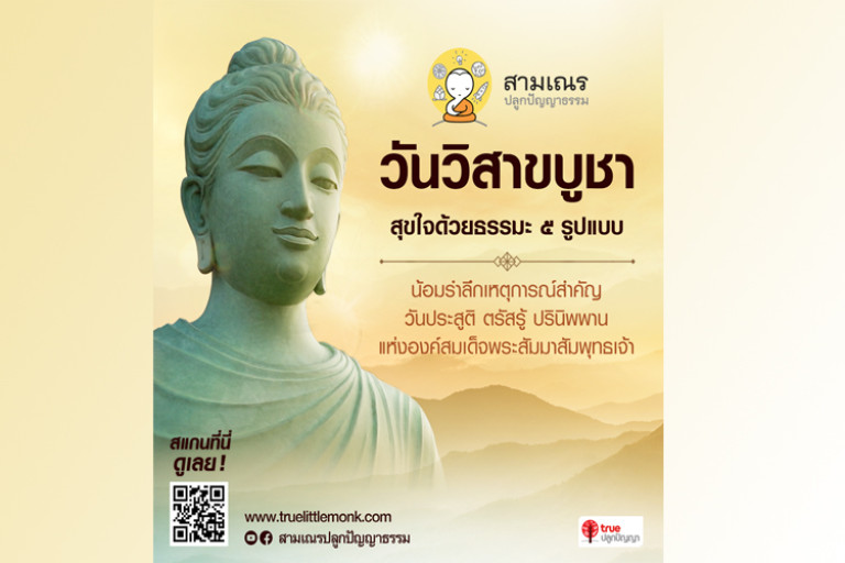 เมื่อวันพระใหญ่ เวียนมาถึงอีกครั้ง รวมถึงยังเป็นวันสำคัญสากลของโลกจากมติเห็นพ้องของสมัชชาใหญ่แห่งสหประชาชาติ ด้วยมีความเกี่ยวข้องโดยตรงกับพุทธประวัติขององค์พระสัมมาสัมพุทธเจ้า ได้แก่ การประสูติ ตรัสรู้ และปรินิพพาน...เรากำลังพูดถึง วันวิสาขบูชา ซึ่งตรงกับขึ้น 15 ค่ำ เดือน 6 เป็นวันเดียวกันที่ทั้ง 3 เหตุการณ์อัศจรรย์นี้เกิดขึ้น เครือเจริญโภคภัณฑ์ และกลุ่มทรู จึงได้คัดสรรธรรมะ สร้างสรรค์เป็น 5 รูปแบบ ให้พุทธศาสนิกชน ยุคดิจิทัล ได้เข้าถึงหลักธรรมคำสอนของพระพุทธองค์ เกิดความสุขใจ อิ่มบุญ อันเป็น สิริมงคลแก่ชีวิต ได้แก่