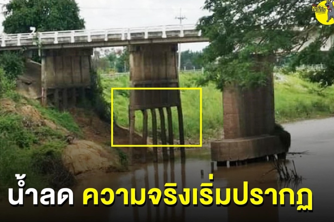 สะพานที่เห็นนี้เป็นสะพานข้ามแม่น้ำชี อยู่ที่บ้านหนองมะกุด ต.ยางหวาย อ.คอนสวรรค์ จ.ชัยภูมิ สภาพที่เห็นเกรงว่าจะมีเรื่องเศร้าในไม่ช้า สาเหตุที่เป็นแบบนี้เกิดจากตอนก่อสร้าง ตอกเสาเข็มเอียง แล้วไม่แก้ไข เทเสาเอียงกลับไปหาแนวคานสะพาน ตรวจรับงานกันอย่างไรไม่ทราบ แต่เดิมอาจไม่มีใครรู้เห็นแต่พอตลิ่งโดนเซาะ น้ำลด ความจริงก็เผยออกมา