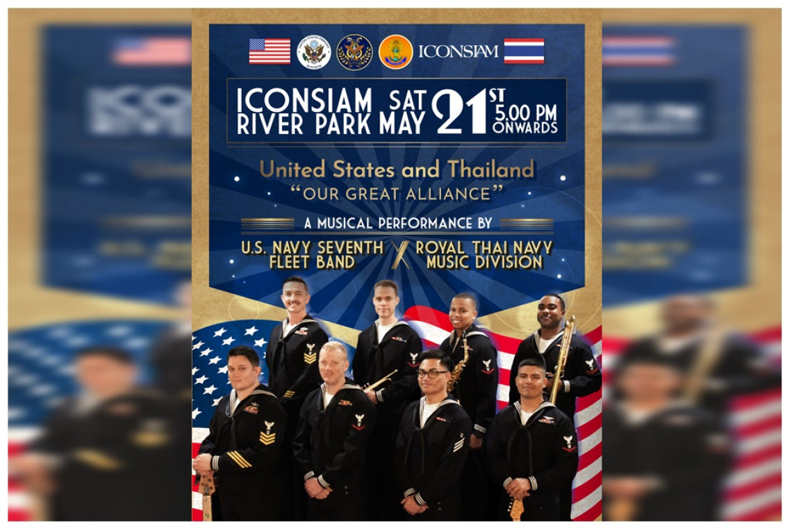 เนื่องในโอกาสเฉลิมฉลองสัมพันธไมตรีอันดีระหว่างประเทศไทยและสหรัฐอเมริกาที่มีมายาวนานกว่า 200 ปี สถานทูตสหรัฐอเมริกาประจำประเทศไทย ร่วมกับ ไอคอนสยาม เชิญชมการแสดงดนตรี “United States and Thailand: “Our Great Alliance” จากวงดนตรีทหารเรืออเมริกัน U.S. Navy SEVENTH Fleet Band และกองดุริยางค์ทหารเรือไทย ในวันเสาร์ที่ 21 พฤษภาคม เวลา 17.00 น.เป็นต้นไป ณ ริเวอร์ พาร์ค ไอคอนสยาม ถนนเจริญนคร ชมฟรีโดยไม่เสียค่าใช้จ่าย