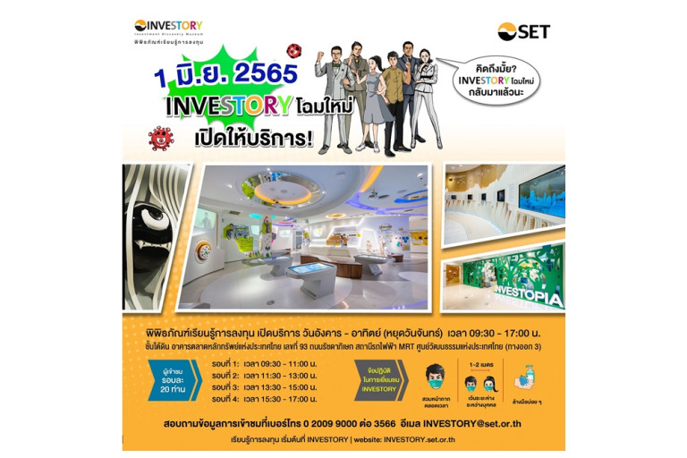 ตลาดหลักทรัพย์แห่งประเทศไทย (ตลท.) ชวนเยาวชนไทยและผู้สนใจเริ่มต้นลงทุน สัมผัสประสบการณ์เรียนรู้ด้านการวางแผนการเงินและการลงทุนที่พิพิธภัณฑ์เรียนรู้การลงทุน INVESTORY โฉมใหม่ ที่พร้อมเติมเต็มความรู้ด้านการลงทุนเพื่อความยั่งยืน (Inspire to Invest for Sustainability) สร้างประสบการณ์ใหม่ผ่านเทคโนโลยีที่หลากหลายมากขึ้น พร้อมกับการปรับโฉมใหม่ใน 5 ไฮไลท์ ได้แก่ New Content, New Characters, New Look, New Leaning Technology, New Extra Exhibition ที่ช่วยให้การเรียนรู้แบบ Interactive Self-Discovery Museum สนุกกว่าเดิม