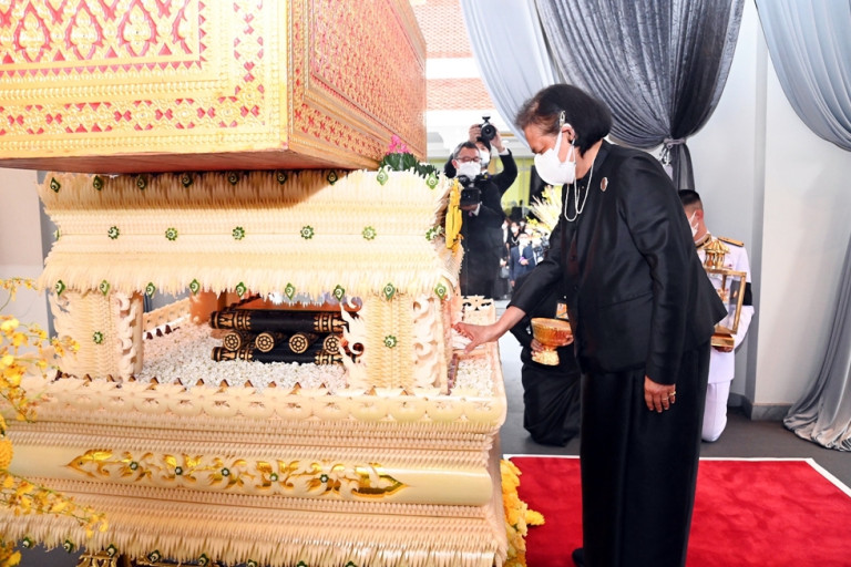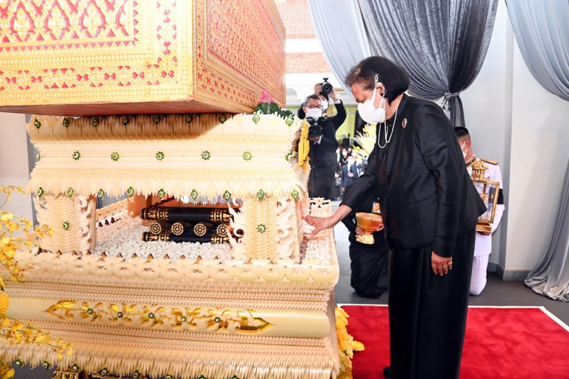 เมื่อเวลา 17.00 น. วันที่ 5 มิ.ย.65 สมเด็จพระกนิษฐาธิราชเจ้า กรมสมเด็จพระเทพรัตนราชสุดา เจ้าฟ้ามหาจักรีสิรินธร มหาวชิราลงกรณวรราชภักดี สิริกิจการิณีพีรยพัฒน รัฐสีมาคุณากรปิยชาติ สยามบรมราชกุมารี เสด็จฯ พระราชดำเนินไปในการพระราชทานเพลิงศพ นายเศรษฐา ศิระฉายา จ.ภ. ศิลปินแห่งชาติ สาขาศิลปะการแสดง (ดนตรีไทยสากล-ขับร้อง) ณ เมรุวัดเทพศิรินทราวาส เขตป้อมปราบศัตรูพ่าย กรุงเทพมหานคร ครั้นเสด็จเข้าศาลาวรจักรยนต์ ประทับพระราชอาสน์