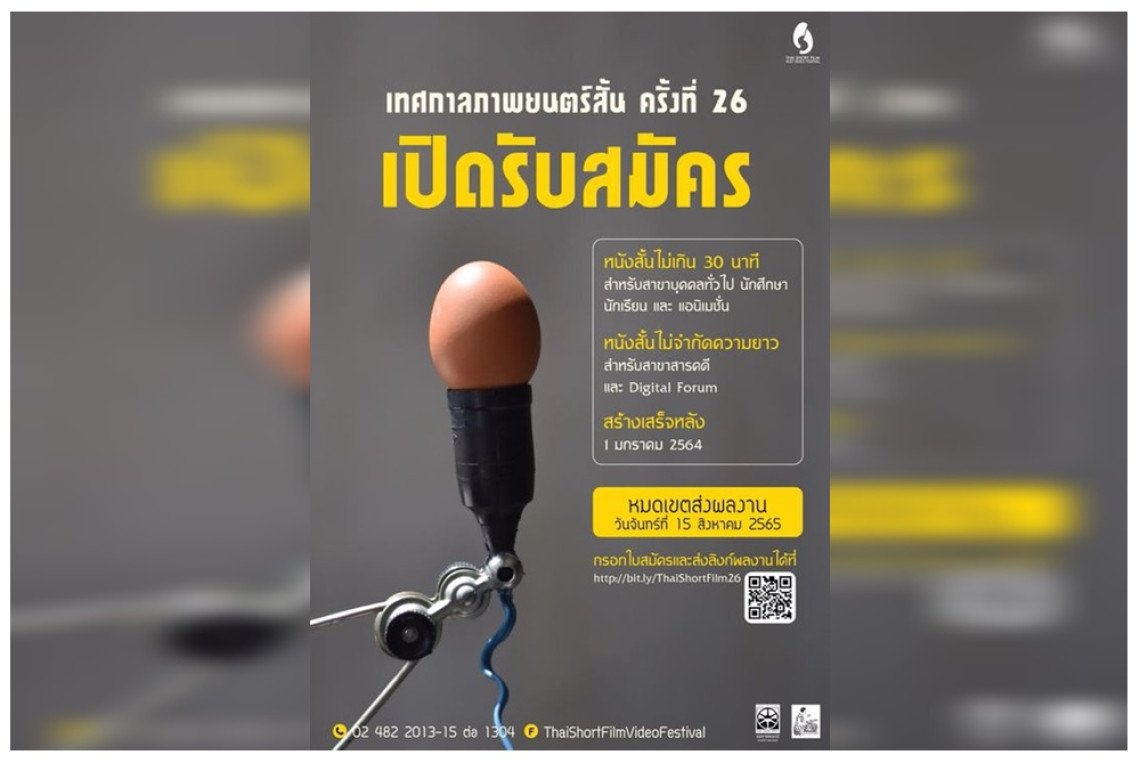 เทศกาลภาพยนตร์สั้น ครั้งที่ 26 เปิดรับสมัครผลงานหนังสั้นไม่จำกัดรูปแบบ หัวข้อ และเนื้อหา ตามแต่ละสาขาและเงื่อนไขต่อไปนี้