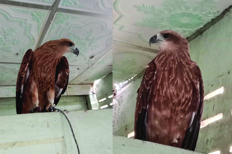 คุณนา/คุณแอน เล่าให้ฟังว่า เมื่อ 2 วันที่แล้ว มีนกเหยี่ยวของใครก็ไม่รู้บินเข้ามาอยู่ในบ้านไม่ยอมไปไหน นกเหยี่ยวตัวดังกล่าวอายุประมาณ 1 ปี มีลักษณะเชื่องมาก ไม่จิกทำร้ายใคร ที่ขามีเชือกหนังและกระดิ่งผูกอยู่ทั้ง 2 ข้าง ตนเองจึงเลี้ยงไว้และให้อาหารเป็นเนื้อไก่ดิบ เพื่อรอเจ้าของมาตามหา แต่พอผ่านไป 2 วันแล้วไม่มีเจ้าของไม่มาตามหา ตนเองจึงตัดสินใจนำนกเหยี่ยว มามอบให้กับเจ้าหน้าที่ตำรวจเก็บไว้ เพื่อตามหาเจ้าของต่อไป แต่ตำรวจไม่มีกรงนกและไม่มีพื้นที่ที่จะเก็บนกเหยี่ยวไว้ ตนเองจึงขอเก็บเอาไว้เอง และอีก 2-3 วันถ้ายังไม่มีเจ้าของมาแสดงตัว ตนก็จะนำนกเหยี่ยวไปส่งมอบให้กับ กรมอุทยานแห่งชาติ สัตว์ป่าและพันธ์ุพืช ถนนพหลโยธิน กทม.