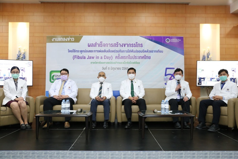 "คณะทันตแพทยศาสตร์ มหาวิทยาลัยมหิดล โดยภาควิชาศัลยศาสตร์ช่องปากและแม็กซิลโลเฟเชียล ได้ผ่าตัดเนื้องอกในช่องปากและสร้างขากรรไกรโดยใช้กระดูกน่องและต่อเส้นเลือดร่วมกับการใส่ฟันปลอมยึดด้วยรากเทียมครั้งแรกในประเทศไทย"