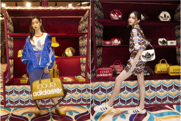 คอลเล็คชั่นแรกของ adidas x Gucci เปิดตัวครั้งแรกบนรันเวย์ Exquisite Gucci ในพื้นที่ซึ่งรายล้อมไปด้วยกระจกเงาที่สะท้อนตราสัญลักษณ์ของ Gucci อันมีประวัติมายาวนานให้เพิ่มจำนวนเป็นทวีคูณและถูกแปลงโฉมลงมาอยู่ในคอลเล็คชั่นเสื้อผ้าแนวสตรีทแวร์ เป็นการขยายคอนเซ็ปท์การสร้างสรรค์ที่ตั้งอยู่บนพื้นฐานของโลโก้สามแถบของ adidas โดยเปิดตัวในลุคบุคที่ปล่อยออกมาเมื่อเดือนที่แล้ว ชิ้นงานที่คัดสรรมาทั้งหมดได้สะท้อนให้เห็นถึงสุนทรียภาพในหลากมิติของอเลสซานโดร มิเคเล (Alessandro Michele) โดยผสมเอกลักษณ์ของ Gucci และจุดเด่นของแบรนด์กีฬาเก่าแก่อย่าง adidas เป็นการผสมผสานตัวตนของเสื้อผ้าแฟชั่นชั้นสูงและสตรีทแวร์เข้าด้วยกัน