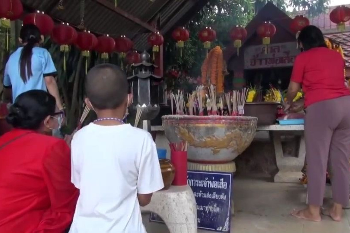 ส่วนคุณลำไย เปี่ยมเพิ่มพัฒน์ อายุ 70 ปี เจ้าของโต๊ะจีน กล่าวว่า วันนี้ได้นำโต๊ะจีนพร้อมอาหารคราวหวานจำนวน 8 อย่างมาเลี้ยงเจ้าพ่อเสือ ส่วนหญิงสาวหลังจากที่แต่งงานมานานนับสิบปีไม่มีบุตร บนขอให้ได้เป็นลูกชายกับเจ้าพ่อเสือไว้ก็ได้สมความปราศนา คือนางปรียาพา เดชพีระโชติ อายุ 43 ปี ผู้เป็นแม่ พร้อมด้วย ด.ช.จิรพัฒน์ เดชพีระโชติ อายุ 12 ปี หรือ น้องปลื้ม ลูกชาย รวมทั้งครอบครัวเดินทางมาจากจังหวัดนครราชสีมา เพื่อนำ ด.ช.จิระพัฒน์ หรือน้องปลื้ม มาไหว้เจ้าพ่อเสือซึ่งเป็นลูกชายที่ตนได้บนขอเจ้าพ่อเสือไว้ ด.ช.จิรพัฒน์ ก็ได้แสดงตัวเป็นลูกเจ้าพ่อเสือ ท่ามกลางความสนใจของผู้ที่มากราบไหว้เจ้าพ่อเสือเป็นอย่างมาก