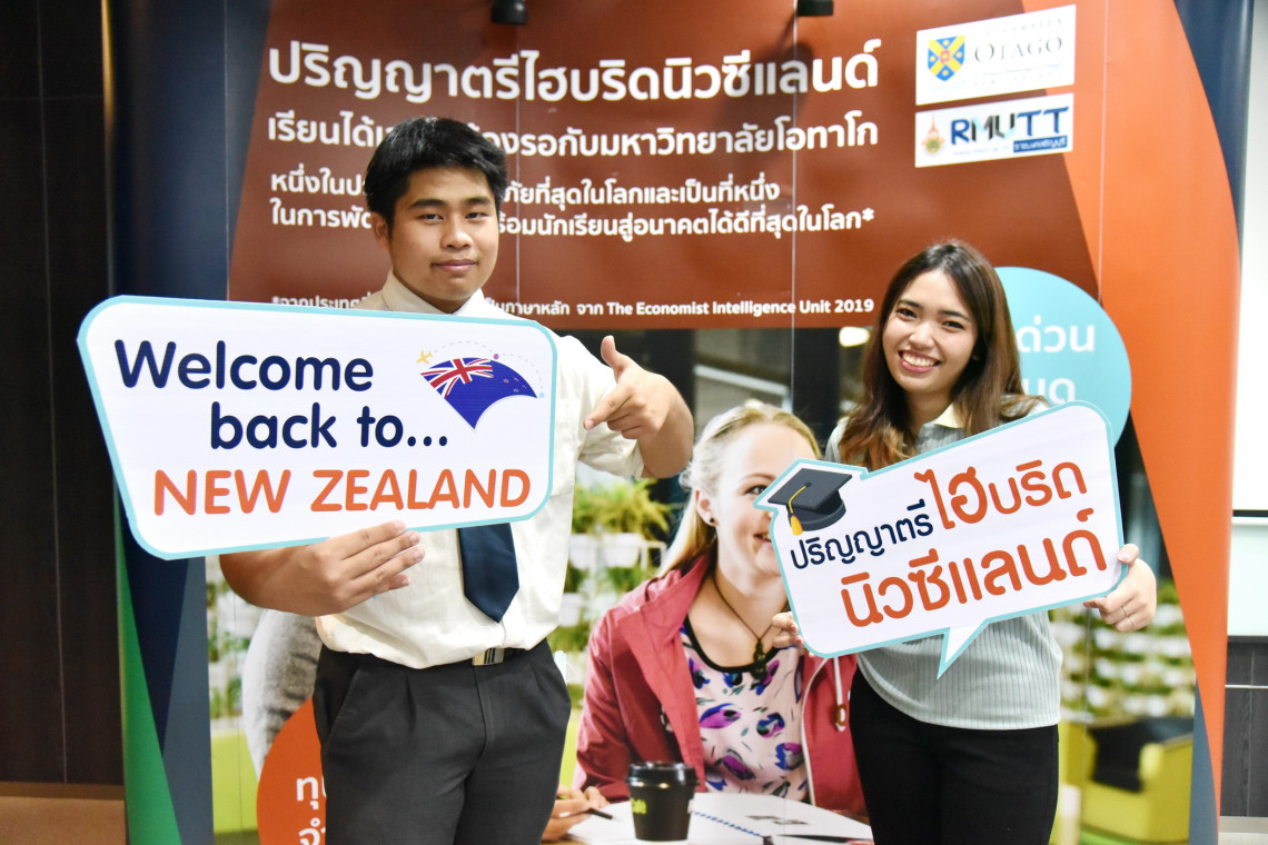 หลักสูตรเตรียมความพร้อมปริญญาตรีไฮบริดนิวซีแลนด์ เกิดจากความร่วมมือของ RMUTT และมหาวิทยาลัย OTAGO ของนิวซีแลนด์ เพื่อเปิดโอกาสให้น้องๆม.5-ม.6 เรียนปรับพื้นฐานและเตรียมความพร้อมก่อนบินไปเรียนต่อป.ตรีที่นิวซีแลนด์ โดยเรียนที่ไทย 1 เทอม และไปต่อปริญญาตรีที่นิวซีแลนด์เพียง 3 ปีกว่า สามารถเลือกเรียนต่อได้ทุกมหาวิทยาลัยของนิวซีแลนด์ ในหลักสูตรธุรกิจ การท่องเที่ยว และศิลปะศาสตร์ในหลากหลายสาขา เช่น Communication Studies, Economics, Film and Media Studies, Psychology, Sport Development and Management , Statistics และอื่นๆ เมื่อเรียนจบป.ตรีแล้ว ยังสมารถทำงานที่นิวซีแลนด์ได้สูงสุด 3 ปี น้องๆที่สนใจ (ต้องจบ ม5. หรือ ม.6 และผลสอบ IELTS 5.5) สามารถสมัครได้ถึงวันที่ 30 มิถุนายน 2565 พร้อมรับทุนการศึกษา 10,000 ดอลลาร์นิวซีแลนด์ เมื่อเลือกเรียนปริญญาตรีกับม.โอทาโก สมัครด่วน หรือ สอบถามข้อมูลได้ที่นี่ http://line.me/ti/p/%40nzenglish