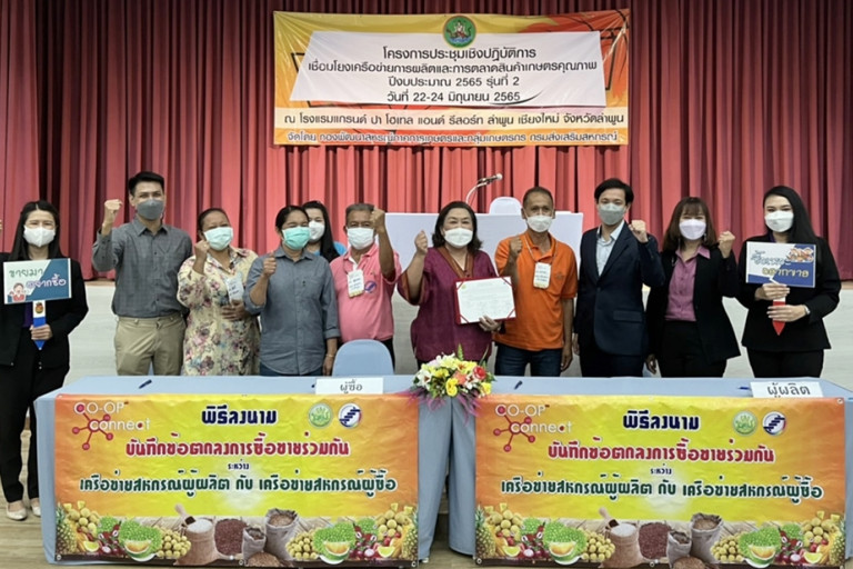 สหกรณ์จังหวัดลำพูน กล่าวอีกว่า การจัดโครงการประชุมเชิงปฏิบัติการเชื่อมโยงเครือข่ายด้านการผลิต และการตลาดสินค้าเกษตรคุณภาพ ปีงบประมาณ พ.ศ. 2565 ครั้งนี้ ได้มีการทำบันทึกข้อตกลงซื้อ-ขาย ผลผลิตการเกษตร จำนวน 56 คู่การค้า รวม 1,285 ตัน มูลค่า 53,780,000 บาท นอกจากนี้ ยังได้นำผู้เข้าอบรมลงพื้นที่ศึกษาดูงานการบริหารจัดการการผลิตลำไย พร้อมเยี่ยมชมจุดรับซื้อลำไยสด แปลงสวนลำไยคุณภาพ ในการเก็บผลผลิตลำไย และการคัดแยกลำไยสด ของสมาชิกสหกรณ์การเกษตรประตูป่า จำกัด อำเภอเมือง จังหวัดลำพูน