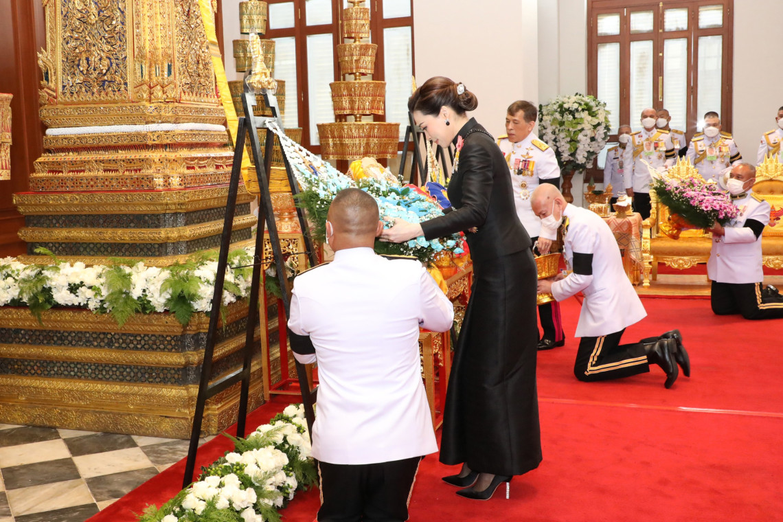 ในโอกาสนี้ พระบาทสมเด็จพระเจ้าอยู่หัว ทรงวางพวงมาลาส่วนพระองค์ และสมเด็จพระนางเจ้า ฯ พระบรมราชินี ทรงวางพวงมาลาของสมเด็จพระนางเจ้าสิริกิติ์ พระบรมราชินีนาถ พระบรมราชชนนี พันปีหลวง และทรงวางพวงมาลาส่วนพระองค์