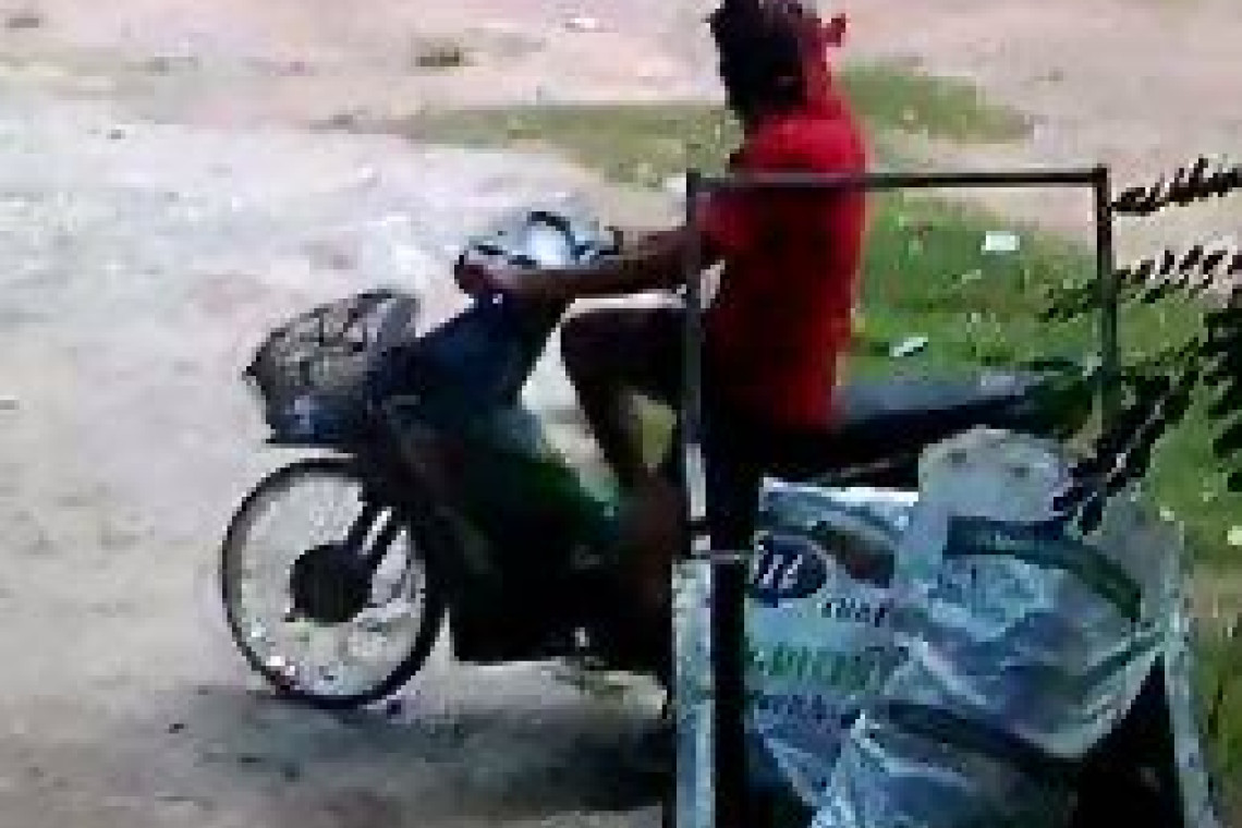 วันที่ 22 สิงหาคม 2565 ผู้สื่อข่าวรายงานว่า ตามที่มีการส่งคลิปภาพในกลุ่มไลน์ ซึ่งเป็นเหตุการณ์ขณะคนร้ายเป็นชาย สวมกางเกงขาสั้นสีดำ เสื้อยืดแขนสั้นสีแดงและใช้ยืดสีดำคาดแดงสวมศีรษะเป็น “ไอ้โม่งแดง” ยกกระสอบสีขาว 3 ถุงใส่รถจักรยานยนต์พ่วงท้าย ที่หน้าร้านซ่อมรถจักรยานยนต์และอุปกรณ์การเกษตรแห่งหนึ่ง ซึ่งกล้องวงจรปิดสามารถบันทึกภาพขณะก่อเหตุอย่างชัดเจน ทั้งจังหวะยกกระสอบของเก่าขึ้นรถ และขณะขับรถจักรยานยนต์พ่วงท้ายออกจากหน้าร้านเหมือนดูลาดเลา ก่อนที่จะย้อนกลับมาลากจูงพ่วงท้ายที่บรรทุกของเก่าออกไป โดยเหตุการณ์เกิดขึ้นเมื่อวันที่ 16 สิงหาคม 2565 ช่วงเวลา 15.35-15.39 น. ทั้งนี้ หลังจากการการเผยแพร่คลิปดังกล่าวออกไป ทำให้เกิดกระแสวิพากษ์วิจารณ์ในวงกว้างว่า เป็นการกระทำที่อุกอาจมาก เนื่องจากก่อเหตุในช่วงกลางวันแสกๆ ไม่กลัวเจ้าของบ้านจะมาเห็น และจุดที่ก่อเหตุอยู่ในเขตชุมชน โดยเฉพาะประเด็นที่ว่าเจ้าของบ้านซึ่งเป็นผู้แชร์คลิปดังกล่าว กลับไม่ติดใจแจ้งความตำรวจตามจับไอ้โม่งแดงรายนี้