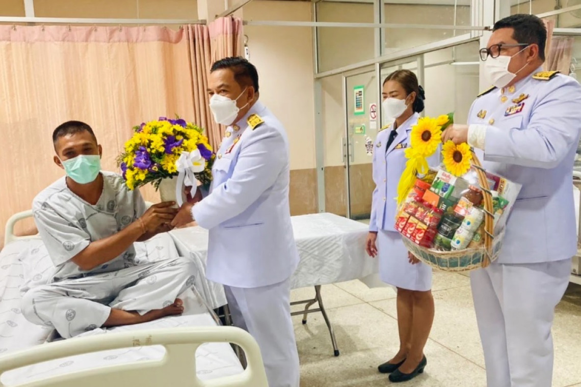วันเดียวกัน เวลา 09.30 น. พระบาทสมเด็จพระเจ้าอยู่หัว ทรงพระกรุณาโปรดเกล้าฯ ให้ นายสนั่น พงษ์อักษร ผู้ว่าราชการจังหวัดนราธิวาส เชิญดอกไม้และตะกร้าสิ่งของพระราชทานของพระบาทสมเด็จพระเจ้าอยู่หัว และสมเด็จพระนางเจ้า ฯ พระบรมราชินี ไปมอบแก่ สิบตำรวจตรี อัคพล บัวจันทร์ และสิบตำรวจตรี ธรรศธรรม สิทธิโรจน์ เจ้าหน้าที่ตำรวจที่ได้รับบาดเจ็บจากเหตุคนร้ายใช้อาวุธปืนยิง และขว้างระเบิดใส่ฐานหน่วยปฏิบัติพิเศษ หมวดเฉพาะกิจหน่วยปฏิบัติการพิเศษนราธิวาส 31 เมื่อวันที่ 23 สิงหาคม 2565 และเข้ารับการรักษาพยาบาล ณ โรงพยาบาลเจาะไอร้อง อำเภอเจาะไอร้อง จังหวัดนราธิวาส