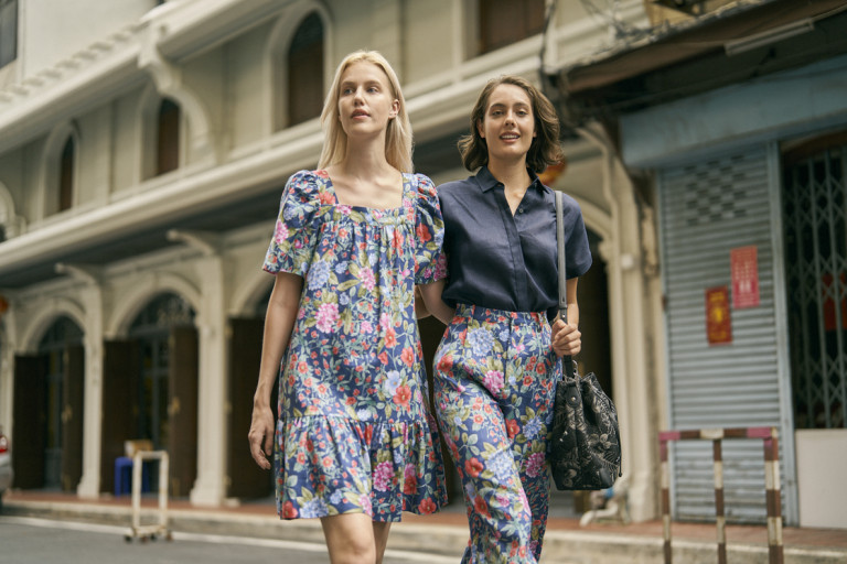 ตามมาด้วยอีกหนึ่งลายปริ้นท์ Queen of Tropical Flowers ลวดลายของสวนดอกไม้ในเขตร้อนที่ผ่านการออกแบบในสไตล์อันเป็นเอกลักษณ์ของแบรนด์ โดยเลือกใช้ ชบา เป็นตัวแทนของดอกไม้เขตร้อน ลักษณะของดอกที่มีสีแดงสื่อถึงความอิสระ บนพื้นสีน้ำเงินเข้มที่ทำให้ลายนั้นโดดเด่นมากยิ่งขึ้นราวกับดอกชบาที่กำลังบานสะพรั่งในช่วงฤดูฝน โดยมีไอเทมส์ที่คัดสรรมาให้เลือกช้อปทั้ง Queen of Tropical Flowers Linen Puff Sleeve Midi เดรสสั้นผ้าฝ้ายเนื้อดี สไตล์น่ารัก Queen of Tropical Flowers Cotton Relax Knit Dress ชุดเดรสผ้าถักที่สวมใส่สบายเหมาะกับอากาศเมืองไทย และ Queen of Tropical Flowers Culotte Pants กางเกงผ้าลินินสำหรับใส่ในวันสบาย ที่มาพร้อมลายปริ้นท์เป็นลูกเล่นให้ดูสนุกยิ่งขึ้น