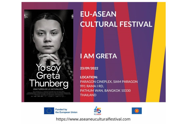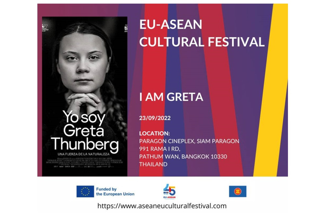 - CINEMA การจัดแสดงภาพยนตร์ ซึ่งจะจัดขึ้นที่ประเทศกัมพูชาและประเทศไทย โดยประเทศไทยจัดแสดงภาพยนตร์ 2 เรื่อง ได้แก่ Barbarian Invasions ภาพยนตร์ประเทศมาเลเซีย ที่คว้ารางวัล Jury Grand Prix จาก Shanghai International Film Festival 2021 โดยการกำกับของ TAN Chui Mui สะท้อนเรื่องราวการต่อสู้ดิ้นรนของผู้หญิงคนหนึ่งในโลกที่ผู้ชายมีอิทธิพล ลงทะเบียนเข้าชมได้ที่ https://www.aseaneuculturalfestival.com/programme-2022/event-08/ และ I am Greta ภาพยนตร์สารคดีเรื่องแรกของผู้กำกับชาวสวีเดน Nathan Grossman ฉายเรื่องราวของ เกรตา ธุนเบิร์ก นักเคลื่อนไหวทางด้านสภาพภูมิอากาศคนรุ่นใหม่ที่มีชื่อเสียงระดับโลก โดยจะจัดฉายในรูปแบบออนไซต์ วันที่ 23 กันยายน 2565 ณ โรงภาพยนตร์ PARAGON CINEPLEX โรง 6 ศูนย์การค้า สยามพารากอน เวลา 16.30 น. เปิดเข้าชมฟรีไม่มีค่าใช้จ่าย ลงทะเบียนเข้าชมได้ที่ https://www.aseaneuculturalfestival.com/programme-2022/event-09/