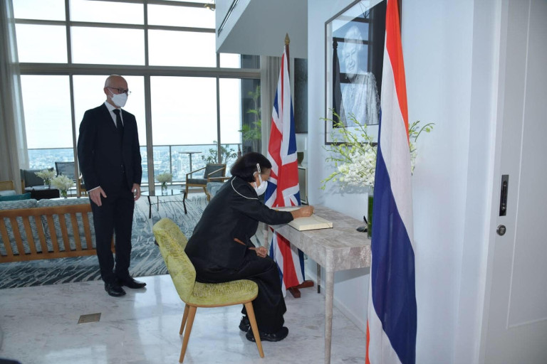 The British Embassy was honoured to welcome HRH Princess Maha Chakri Sirindhorn at the Ambassador’s Residence to sign the book of condolence for Her Majesty Queen Elizabeth II this morning.